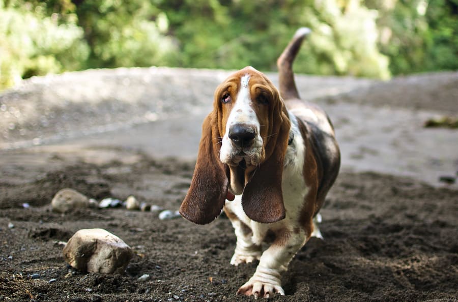 There is something prehistoric about the way a basset moves. Perhaps it’s the low slung body and enormous paws like crocodiles feet. Having seen crocodiles in Australia I know I’d rather have a basset hound coming towards me across sand.