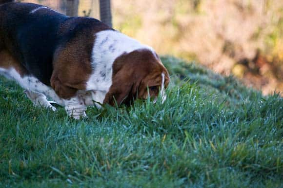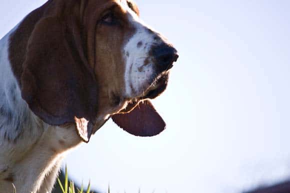 You see a basset gets right down for sniffing and dew can get attached to one’s face.