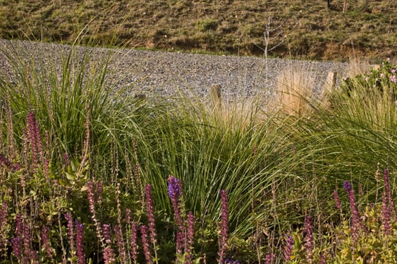 You can see the broader perspective of the cultivated flowers in the countryside context.